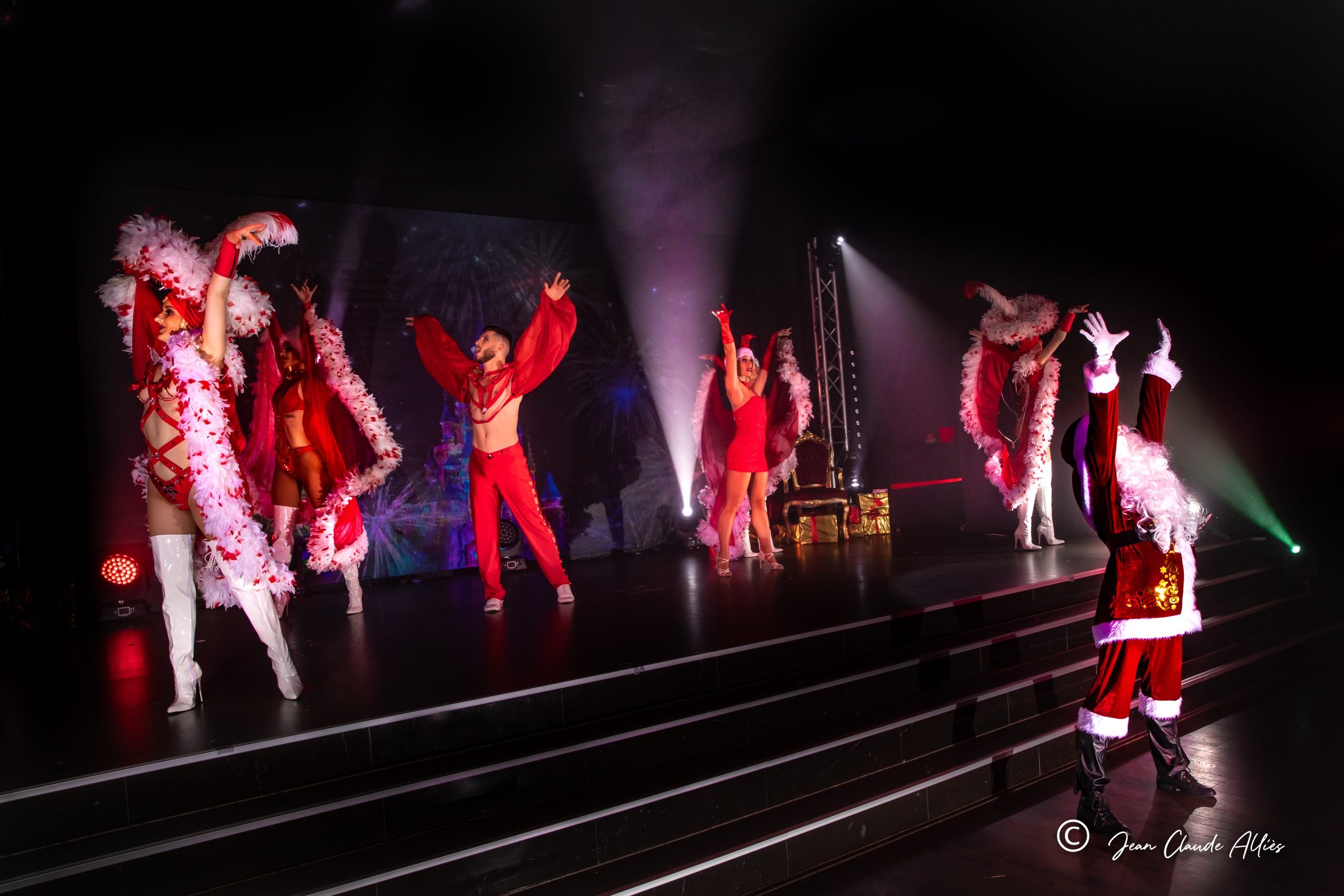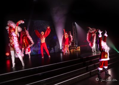 Sur scène, nos danseurs et chanteurs en costumes scintillants vous offrent un spectacle rempli de joie, de rire et de magie. Les lumières étincelantes, les décors somptueux, et l’atmosphère enchanteresse vous plongeront dans un véritable conte de Noël, revisité avec tout le glamour et l’extravagance du cabaret.